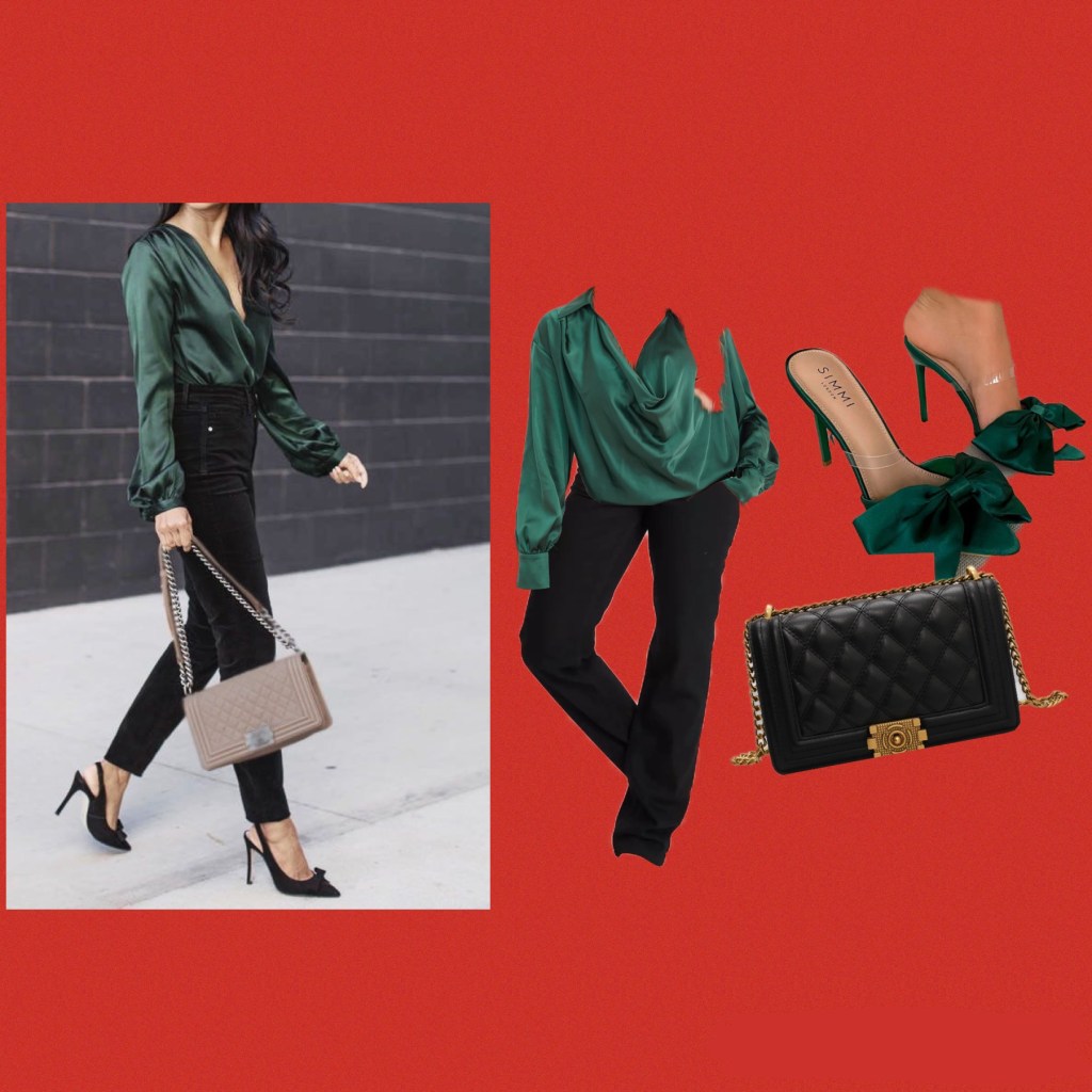 Christmas Fashion Inspo https://www.instagram.com/megans_fashion_inspo/ Green Top, Straight Leg Jeans, Shoes, Bag Sheer Bodysuit, Burgundy Trousers, Necklace, Gold Shoes Champagne top, leather jeans, nude heels, diamanté earrings Share this: Share on X (Opens in new window) X Share on Facebook (Opens in new window) Facebook Like Loading...